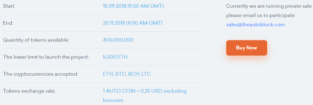 • ICO price: 1 AUTO = 0.00025 ETH;