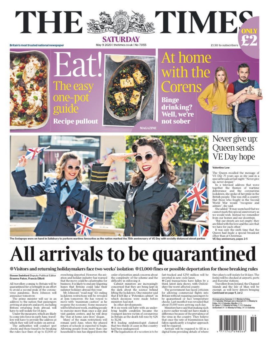 09/05/20 10:25 29 AM Retweet: Quarantining new arrivals for 14 days would have been an effective strategy for containing the virus in January, when the Government considered and rejected the idea. Doing it now, after at least six million Britons have been infected, is an act of pointless self-harm. pic.twitter.com/CMBmK17Lqi