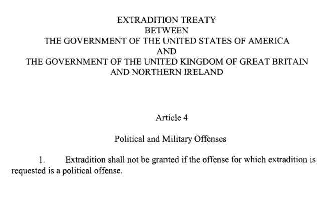 09/05/20 09:04 05 PM Retweet: The UK-US extradition treaty clearly prohibits extradition for political offenses pic.twitter.com/Q0MoKH1V2Z