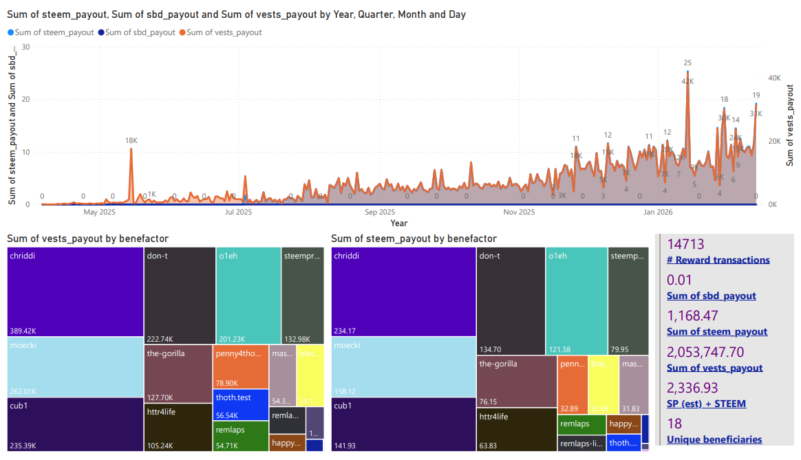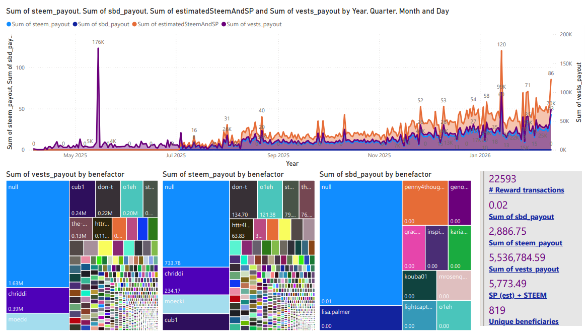 | Total beneficiary payouts (STEEM * 2 ) | 5,773 STEEM | 1,349 STEEM |