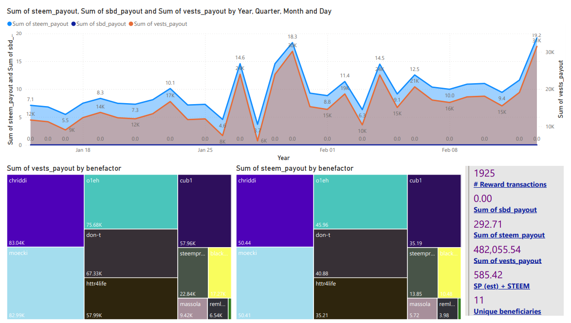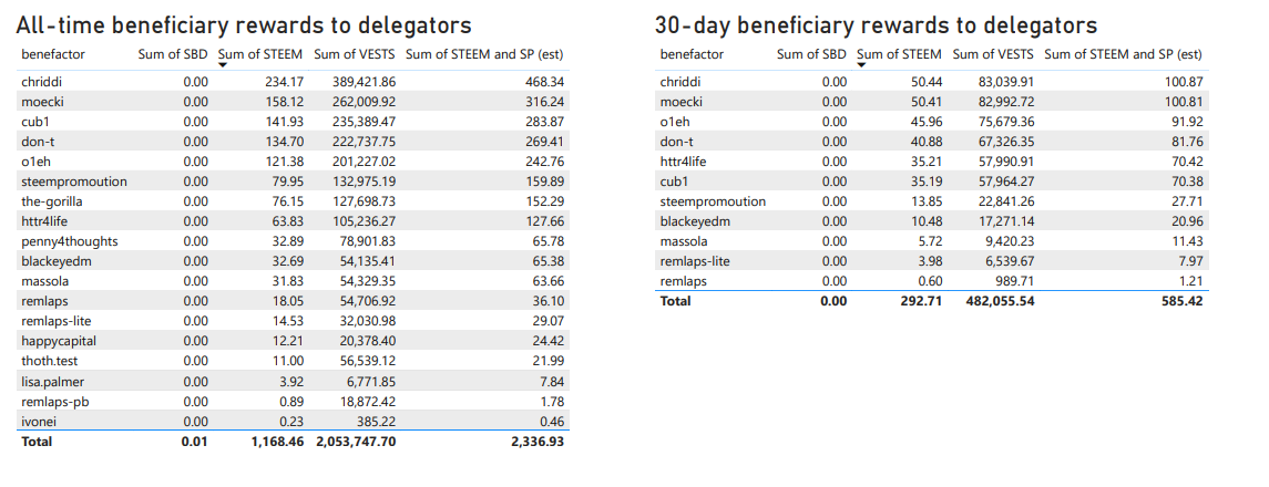 | Delegator beneficiary rewards ( STEEM * 2 ) | 2,336 STEEM | 585 STEEM |