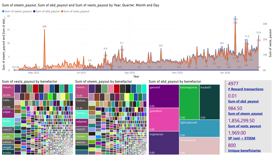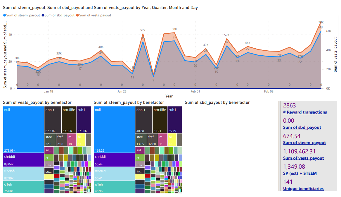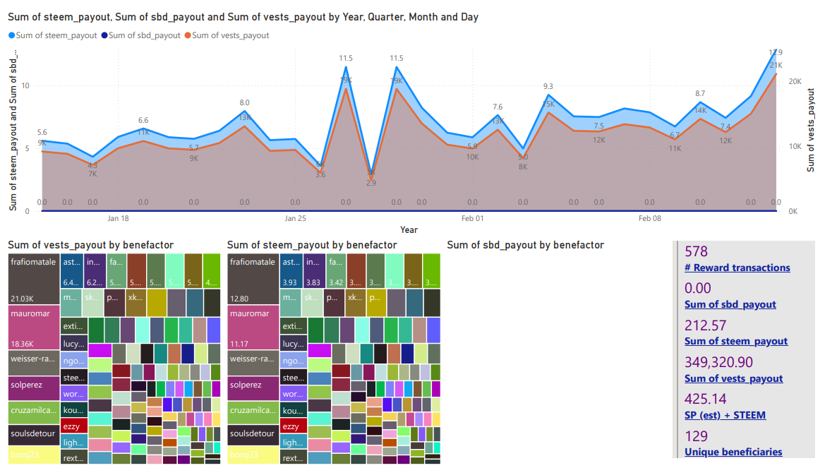 | Author beneficiary rewards ( STEEM * 2 ) | 1,969 STEEM | 425 STEEM |
