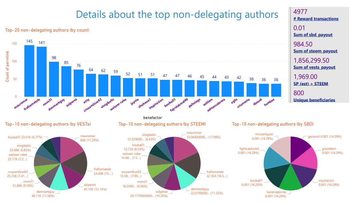 Details about beneficiary rewards to the top authors (by count) / all time