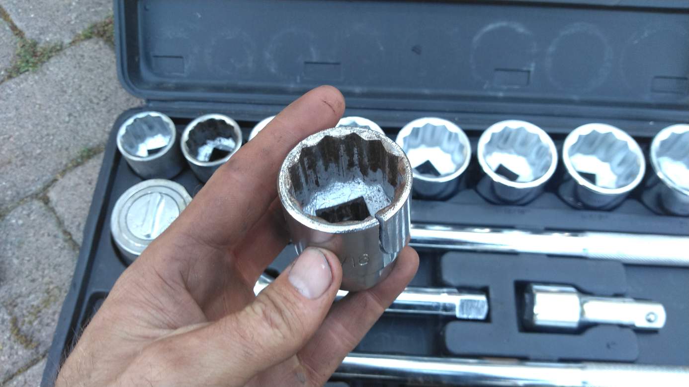 Luckily Harbor Freight has an excellent return policy so they replaced the socket no questions asked. I hammered that gap back together on the breaker bar too, so it's still chooching. I decided not to tempt fate again and just got out the oxy-acetylene torch to heat that last lug nut up. It came right off with my half inch impact once I got some heat in it.
