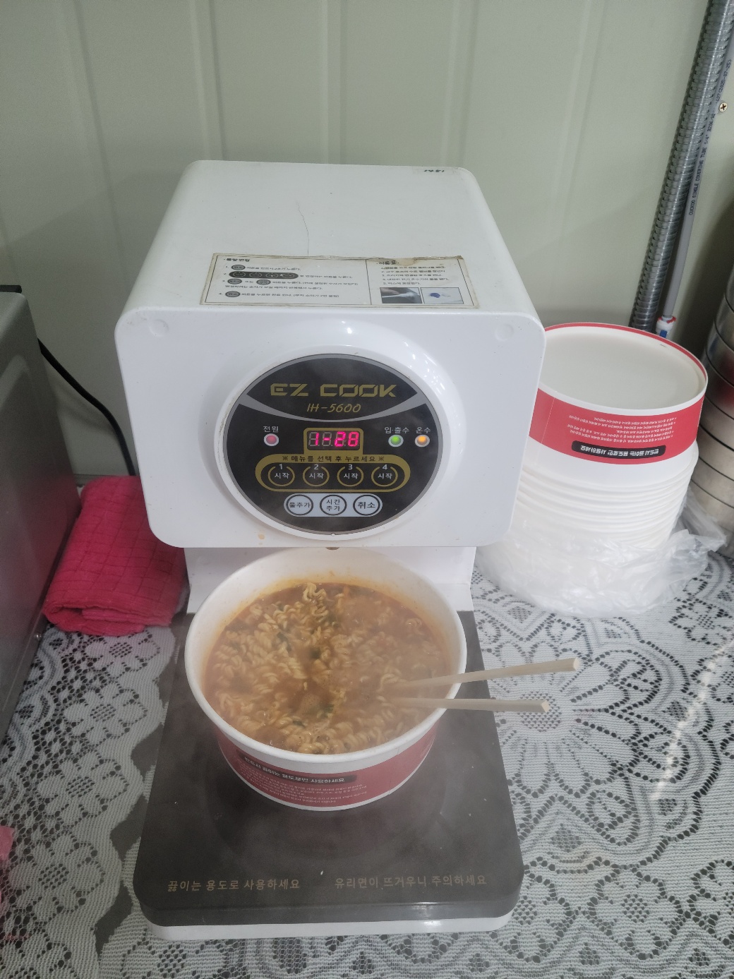 현장생활 (38)hdc (80)in AVLE 일상 • 2 days ago 아침에는 함바 직원식당에서 라면을 끓여 먹을수 있다. 어제 처음 먹어보았는데 라면용기에 라면을 넣고 라면 끓이는 기계 시작버튼을 누르면 끝이다. Posted using SteemX #kr #krsuccess
