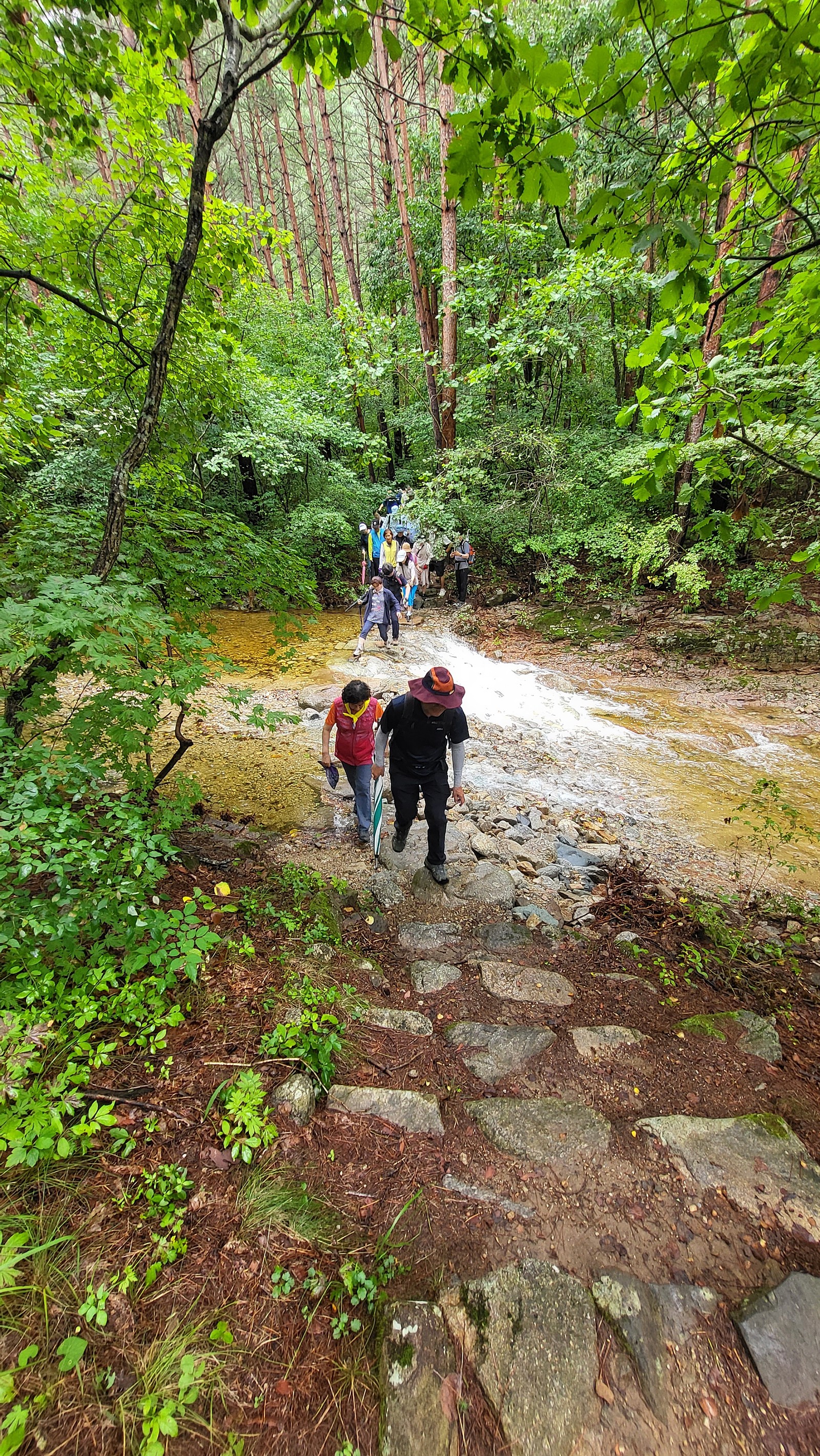 더운 날씨를 감안해 7개 구간 중 난도가 가장 낮은 가족탐방로를 예약했다. 총 거리 5.3㎞, 점심 포함 3시간쯤 걸린다. 점심은 탐방을 마치고 숲에서 먹는다. ‘숲밥’이라 부르는데, 마을 주민들이 정성껏 준비한다. 숲밥이 맛있어 다시 찾는 사람이 있을 정도라고 한다. 당일 아침 인원 점검할 때 신청하면 된다(1인 8000원).