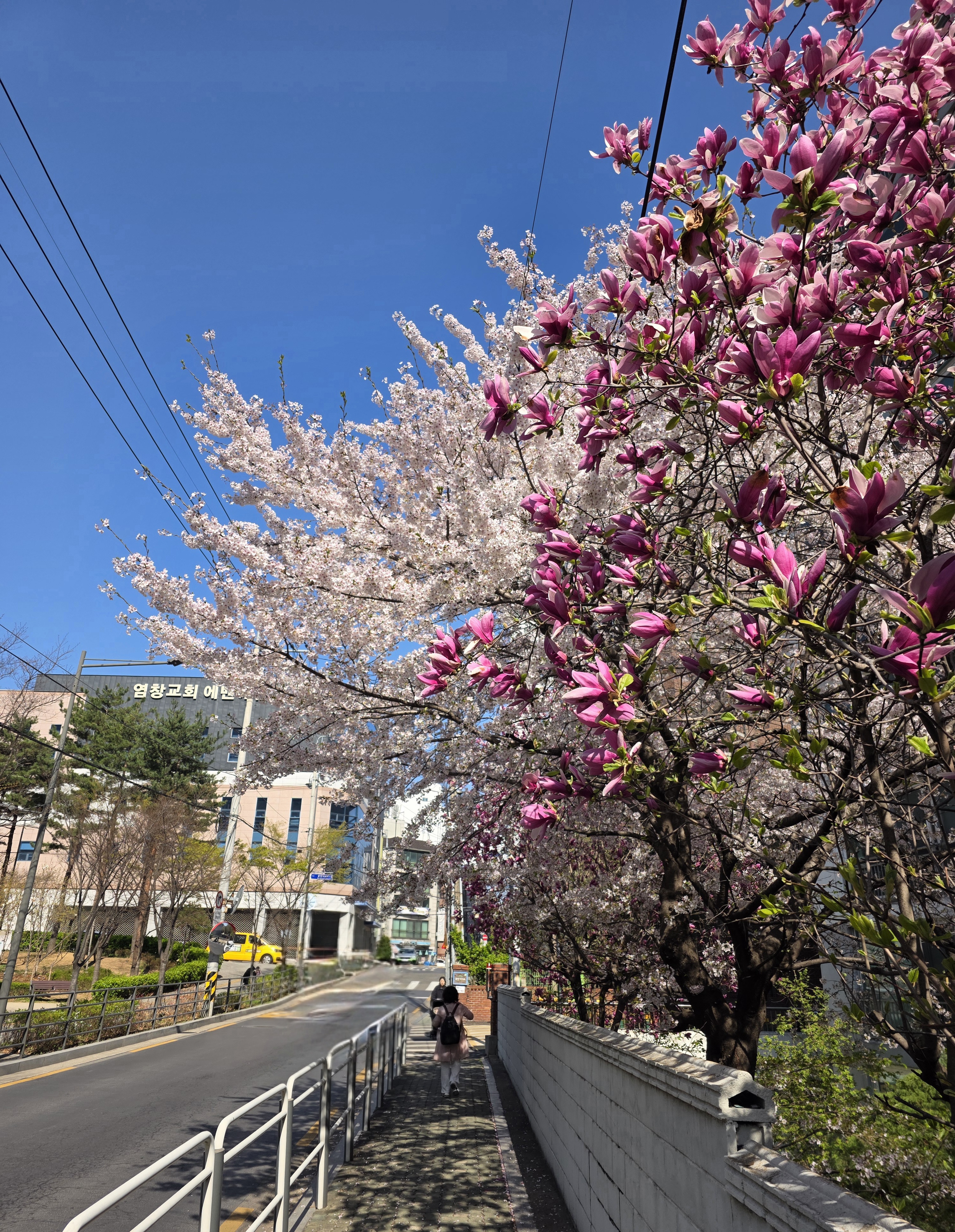 봄의 화려함minbuja (73)in AVLE 일상 • 14 days ago 자목련 뒤편으로 팝콘처럼 흐드러지게 핀 벚꽃이 자목련의 강렬함을 부드럽게 감싸 안네요. 두 꽃의 색 대비가 봄의 화려함을 극대화합니다. #kr #krsuccess #avle