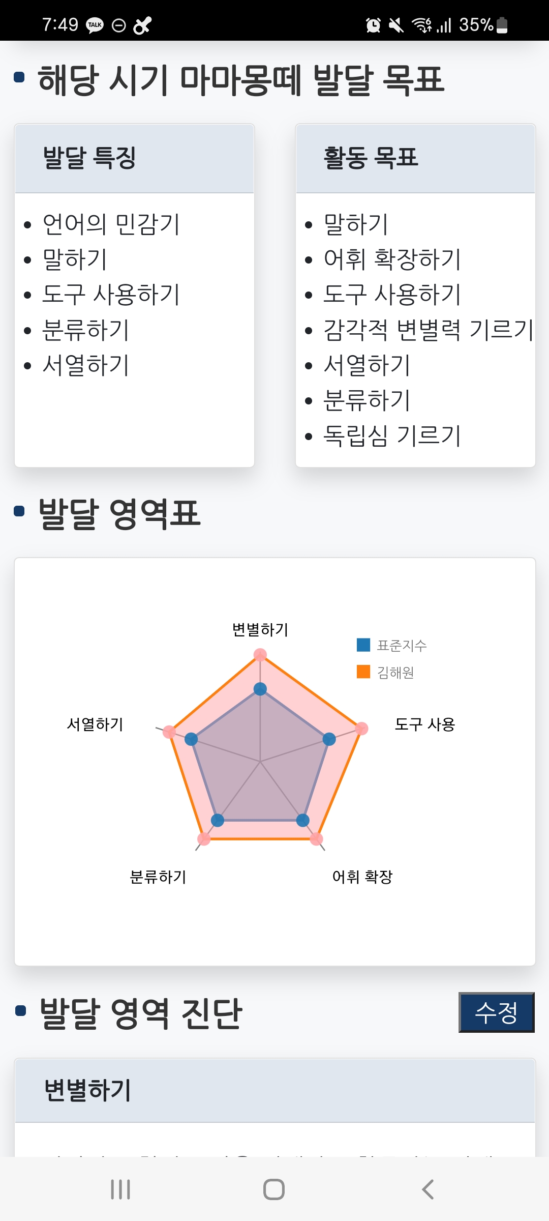 수업 내내 선생님이 무얼 쓰시는 건 알고 있었지만, 뭘 쓰는지 몰랐는데 아이 발달을 적고 계셨나보다.