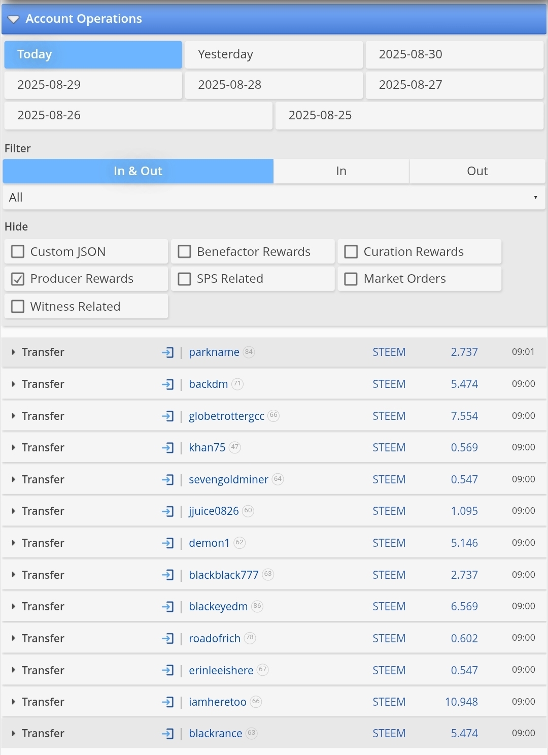 위 사진에서 보이는 트랜잭션 내역은 최근 여러 유저들이 NOVA 태우고 스팀을 보상받는 내역입니다. 아마도 다 합해보면 50STEEM 일것으로 보입니다. 많은 유저가 참여하고 있네요.