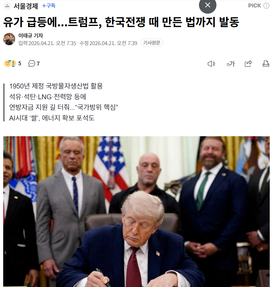 유가 급등에...트럼프, 한국전쟁 때 만든 법까지 발동