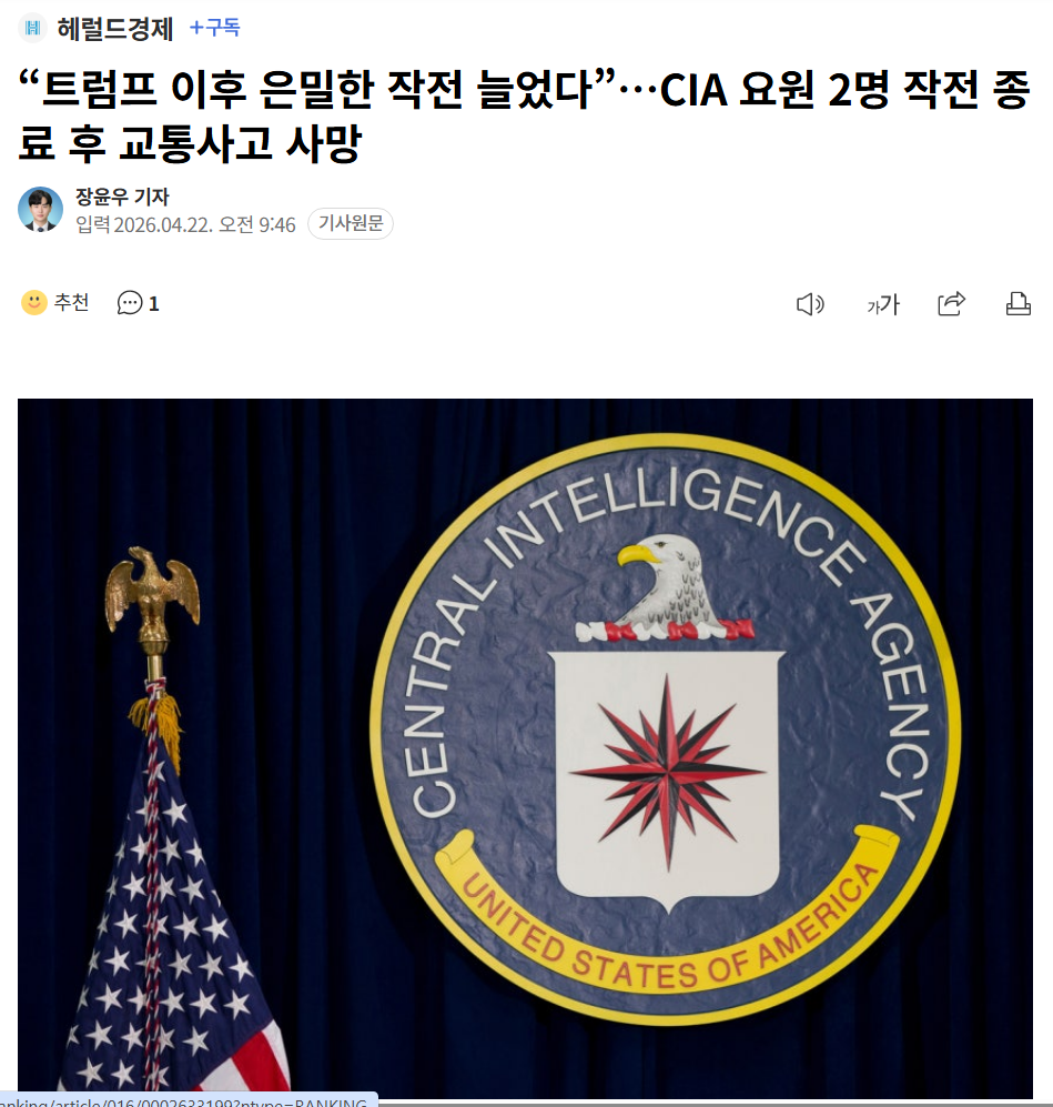 “트럼프 이후 은밀한 작전 늘었다”…CIA 요원 2명 작전 종료 후 교통사고 사망