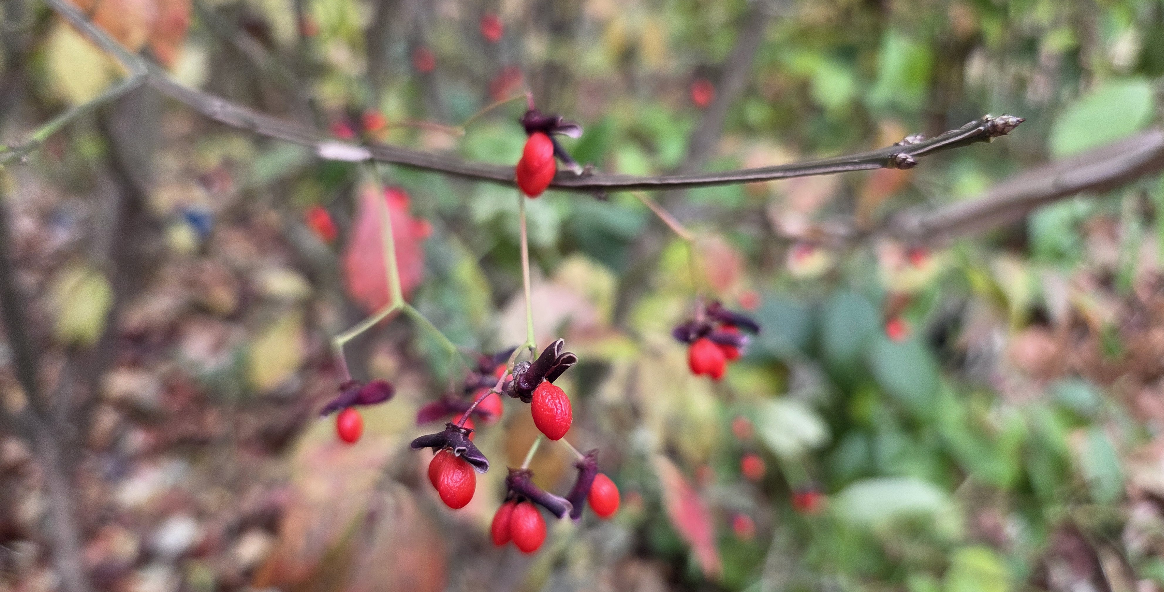 빨갛게 단풍든 화살나무잎들이 지고나니 잎보다 빨간 열매가 추운 날씨속에서 더 돋보입니다.