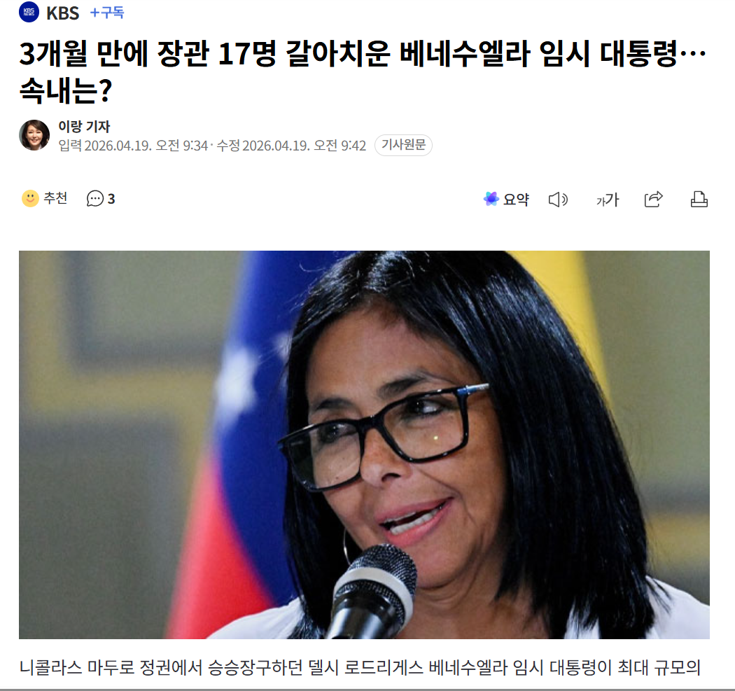 니콜라스 마두로 정권에서 승승장구하던 델시 로드리게스 베네수엘라 임시 대통령이 최대 규모의 권력 재편에 착수했다는 보도가 나왔습니다.