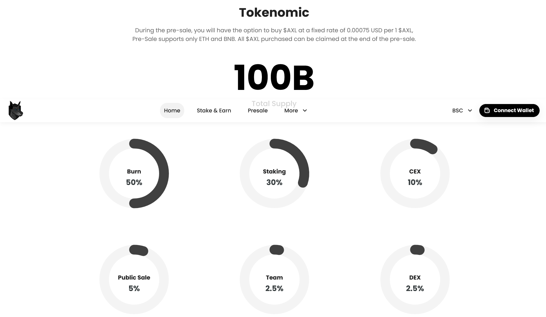 - Token Ticker: AXL - Total token supply: 100.000.000.000