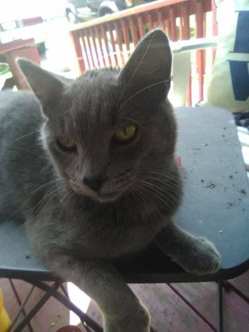 baby dede in the back smoky bear in the middle and mama cat ...there is one more grey one that comes around once in a while ....he is grey also we call him one because he only has one ear the other is bent down he looks almost identical to baby dede...but not one of them came from that mama cat then there is a Siamese with blue eyes