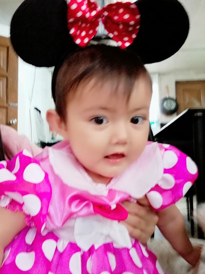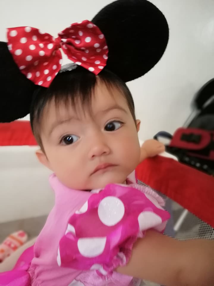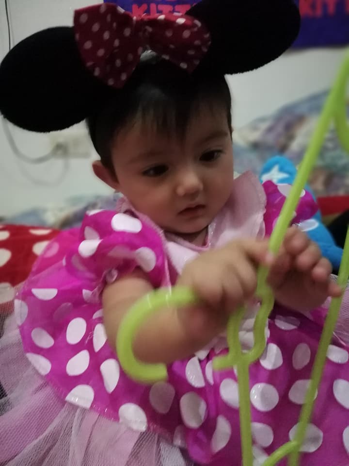 But more than me, I believe my wife is the one who has the most fun spending quality time with her. She loves to dress her up from time to time and this time for her 8th month she decided to turn her into little Minnie Mouse.
