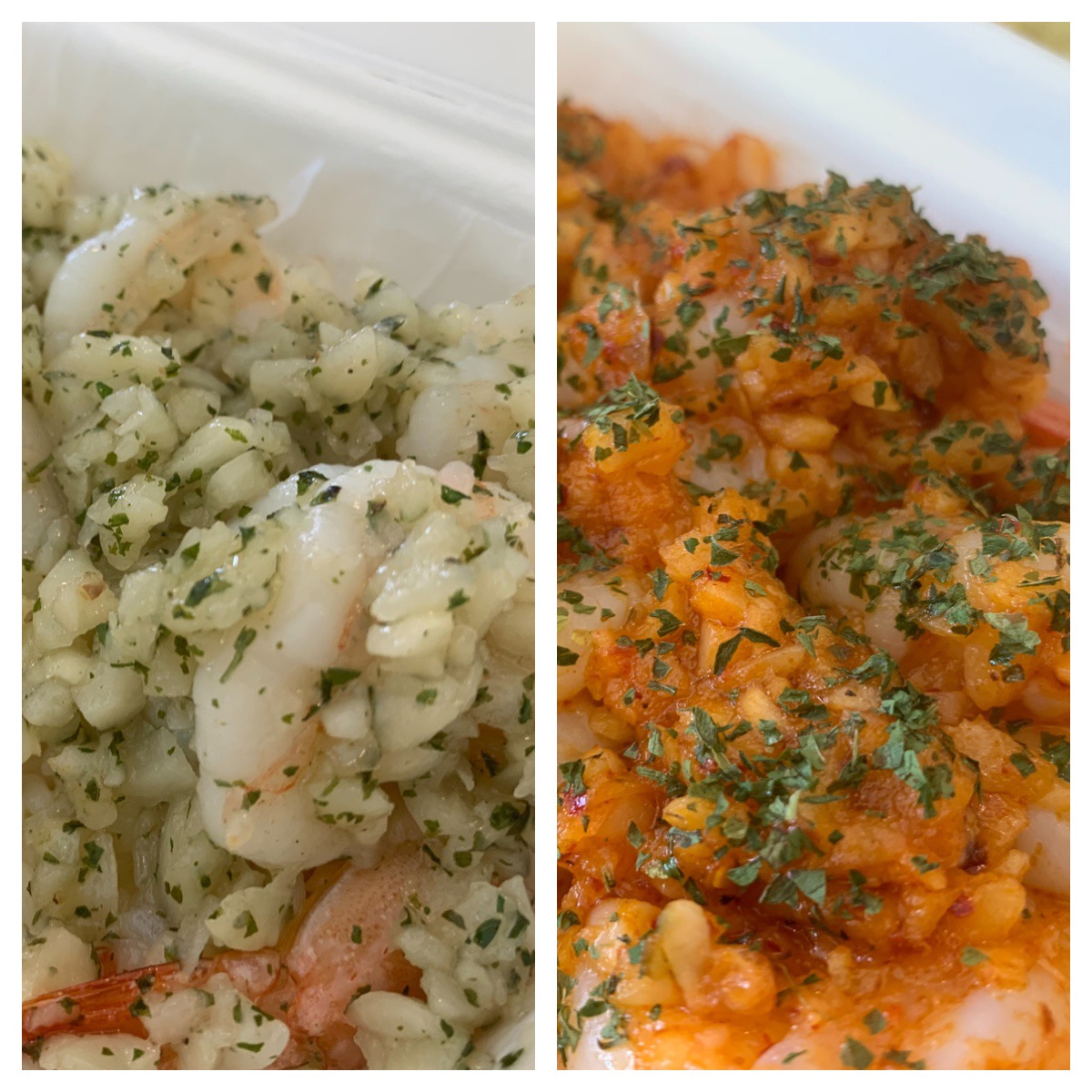 갈릭 쉬림프와 칠리쉬림프 파인애플 주스를 시켜먹었어요