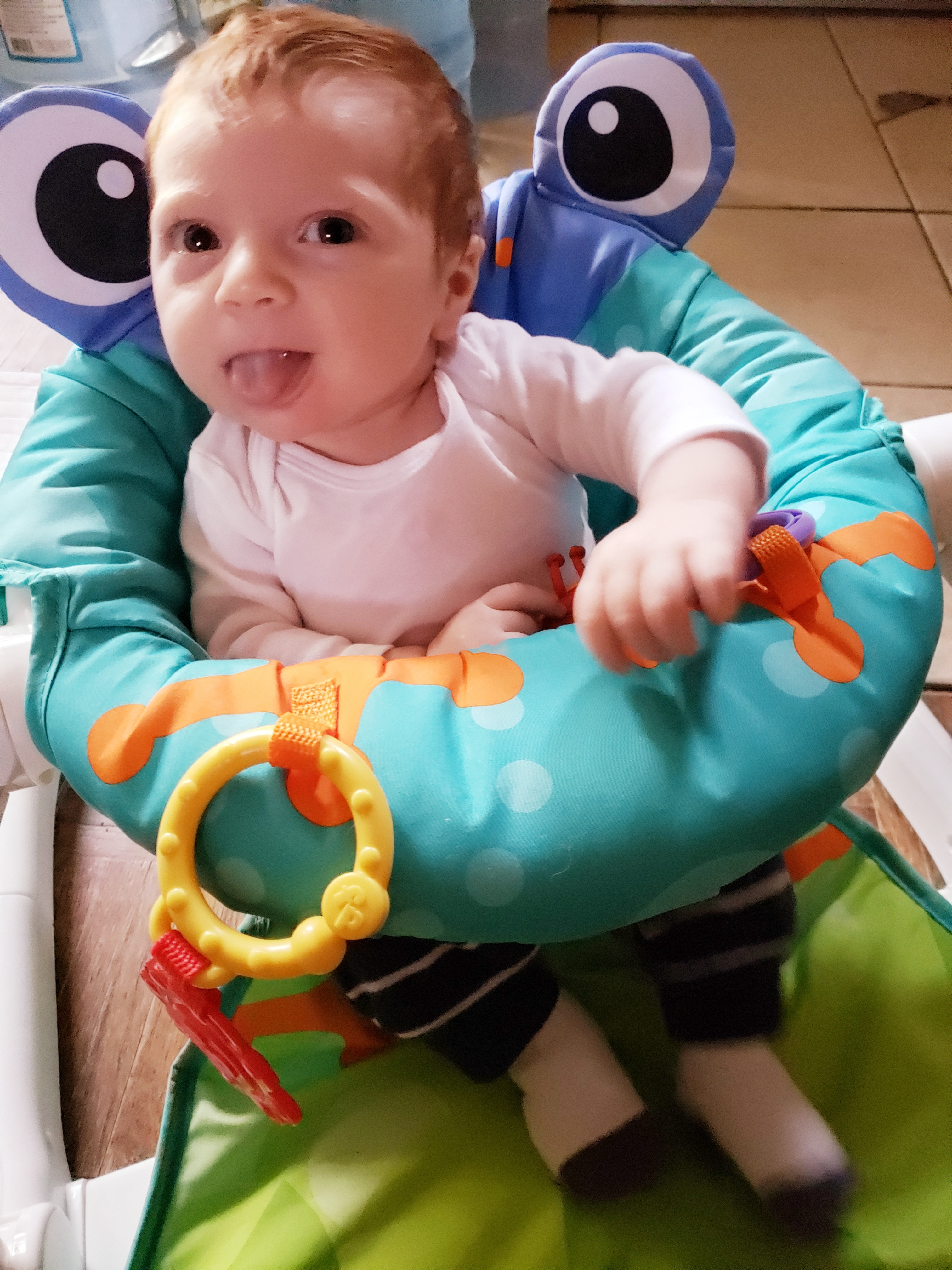 Baby Man has started smiling and laughing. It makes all the fussy times worth it, and I'm not getting so overwhelmed now. He has grown so much already. I'm torn between wanting him to stay small and wanting him to get big enough to play and explore with us... and do things like sit independently for 30 minutes while we cook or do chores. We're still having trouble getting much done because he always wants to be held. But it is getting better.