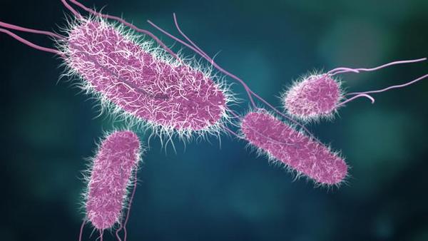 Salmonella is a gram-negative type of enterobacterium that has been found in more than 1,800 different species. Most of the bacteria infect domestic animals, mice and birds. Salmonella infections usually cause nausea and spasmodic abdominal pain, followed by watery diarrhea, fever, and vomiting. Symptoms usually subside within one to four days, but some can last longer. Because stomach acid kills salmonella, it usually takes large amounts of the bacteria to become infected, and children under the age of one and the elderly are more likely to become infected because of a lack of stomach acid. Some reptiles, such as snakes, frogs and geckos, have high levels of salmonella in their intestines, and doctors advise children under five and the elderly to avoid touching them, kissing them or leaving them in the kitchen where food is available.