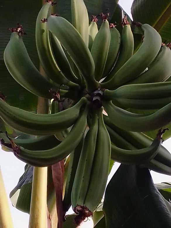 La mayoría de este fruto lo traen de otras regiones, sin embargo en algunos patios se cultiva y se dan racimos aún robustos.