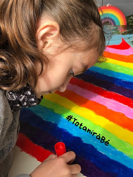 Justamente hoy recibí una fotografía de mi nieta que está en España viviendo su cuarentena y haciendo un dibujo como el de la imagen. Con el mismo mensaje pero en catalán.