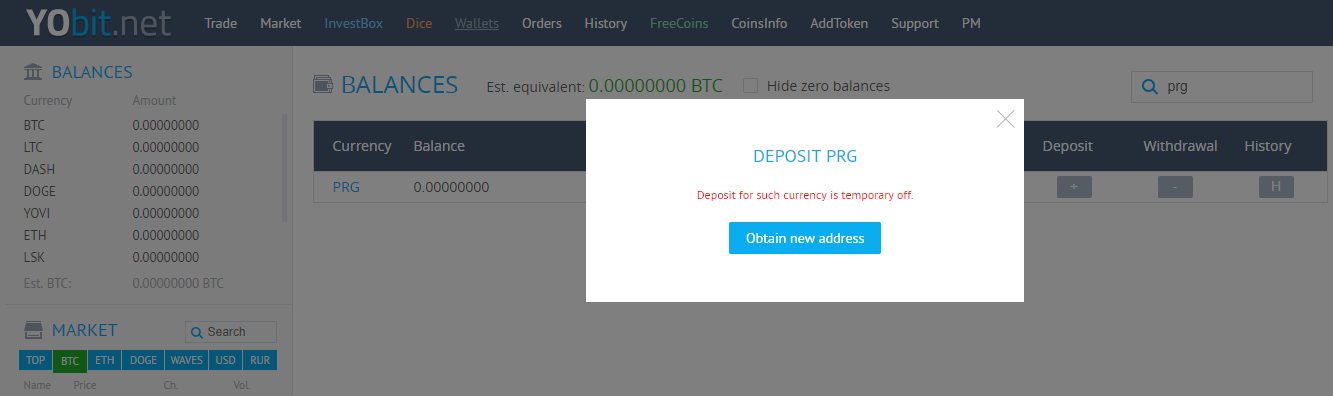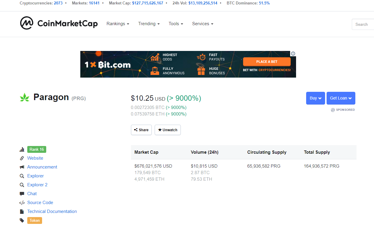코인마켓캡에 표시되는 시세를 주도하는 거래소이다. 현재 PRG 입금은 불가능한 상황. 국내의 몇몇 거래소에서 자주 보이는 가두리 펌핑과 똑같다.