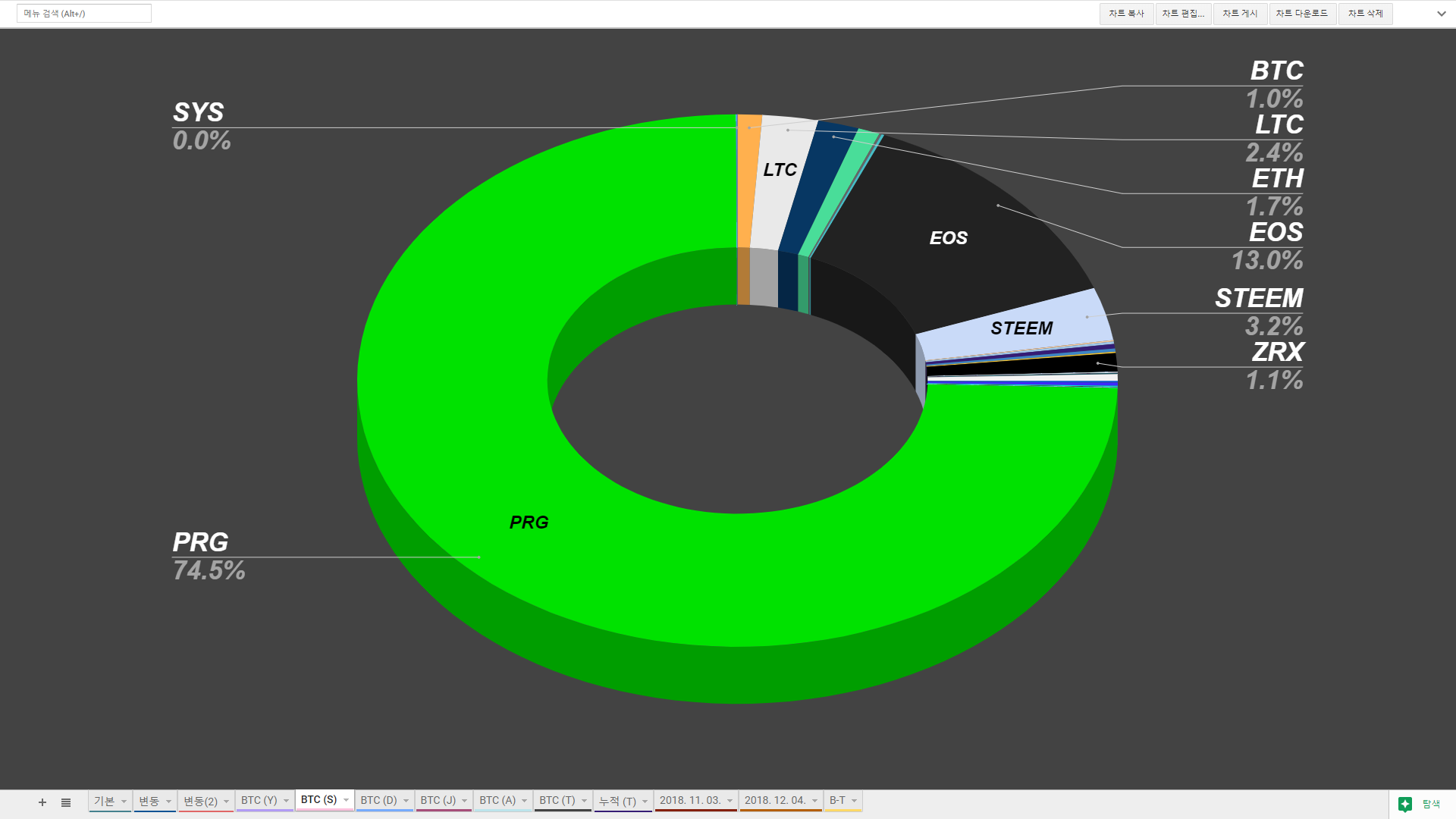 내가 관리하는 도넛 몇 개중 PRG 비중이 가장 큰 도넛이다. 일시적으로 펌핑 진행중인 현재 시세를 기준으로 약 3/4 가량의 자산이 PRG이다.
