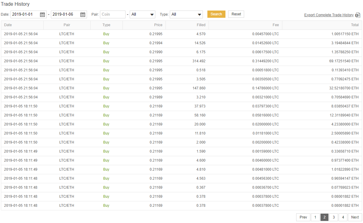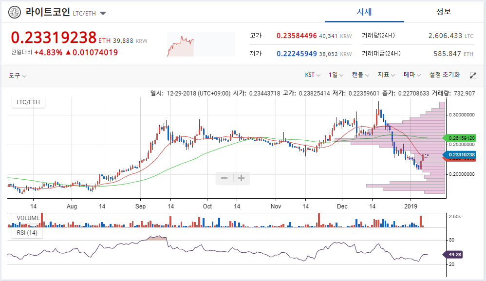 해가 바뀌고 오랜만에 트레이딩을 했다. 지난 달 12월 말에 이뤄진 트레이딩은 스샷에 잡히지 않았지만, 포함하면 평단 ~ 0.2173 (LTC/ETH) 으로 LTC를 많이 매수했다. 사진에 보이는 것보다 평단은 조금 더 높고, 수량도 조금 더 많다. 애초에 나는 추세가 바뀌는 것을 확인하고 진입하기보다는, 일정 교환 비율 이내로 들어서면 하락이 이어지는 와중에도 과감히 진행한다.
