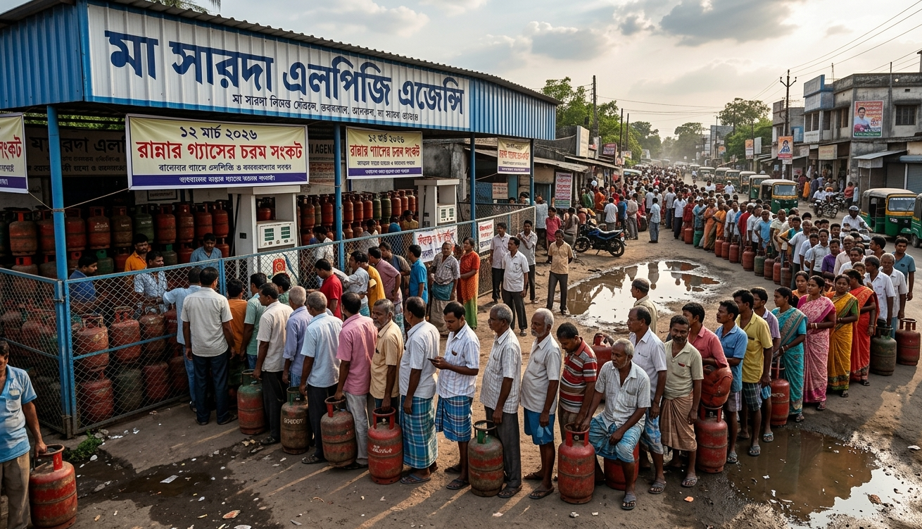 এপার বাংলায়ও চিত্রটি খুব একটা আলাদা নয়। পশ্চিমবঙ্গে দীর্ঘ কয়েক সপ্তাহ ধরে রান্নার গ্যাসের (LPG) তীব্র সংকট চলছে। সরবরাহ কমে যাওয়ায় গ্যাস ডিস্ট্রিবিউশন সেন্টারের সামনে দেখা যাচ্ছে মাইলের পর মাইল দীর্ঘ লাইন। বিশেষ করে মধ্যবিত্ত ও নিম্নবিত্ত পরিবারগুলোর জন্য এটি এখন জীবন-মরণের লড়াই। ১৬ই মার্চ থেকে মুখ্যমন্ত্রী মমতা বন্দ্যোপাধ্যায় এই সংকটের প্রতিবাদে বিশেষ পদযাত্রার ডাক দিয়েছেন।