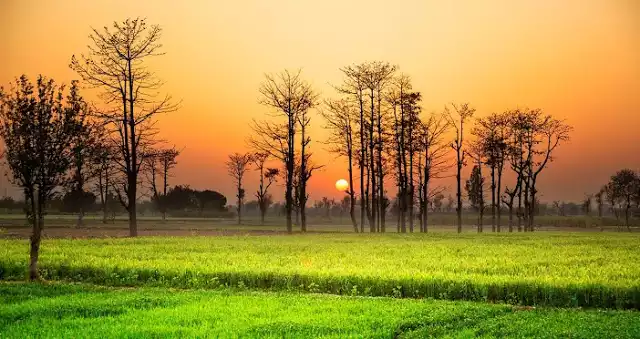 In the morning means the sun's game. Morning means different types of birds. There are many flowering flowers on the tree. In the morning, there are many varieties of crops in the field. The fame of greenery spreads new symphony. Rakhal's camp is in the ground.