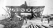 The most difficult task of the operation was to prevent bank erosion and to make the river flow permanently under the bridge. For this, two guide banks of the "Bell-bund" type named after J. R. Bell were built on either side, each extending 910 metres (3,000 ft) upstream and 300 metres (1,000 ft) downstream from the bridge.[3] The ends of the river banks were curved inward and heavily pitched with stone.[3]