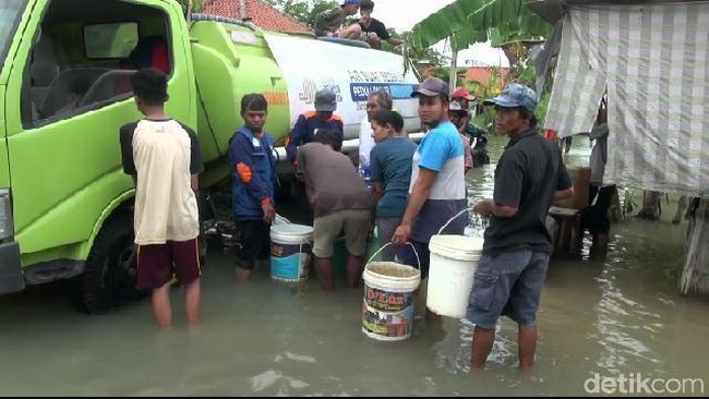 Korban banjir ing distrik Losari, Distrik Brebes, wiwit mbutuhake banyu resik. Residents arep nguyuh lan ngobrol kanggo banyu resik kanggo ngombé lan masak banyu.
