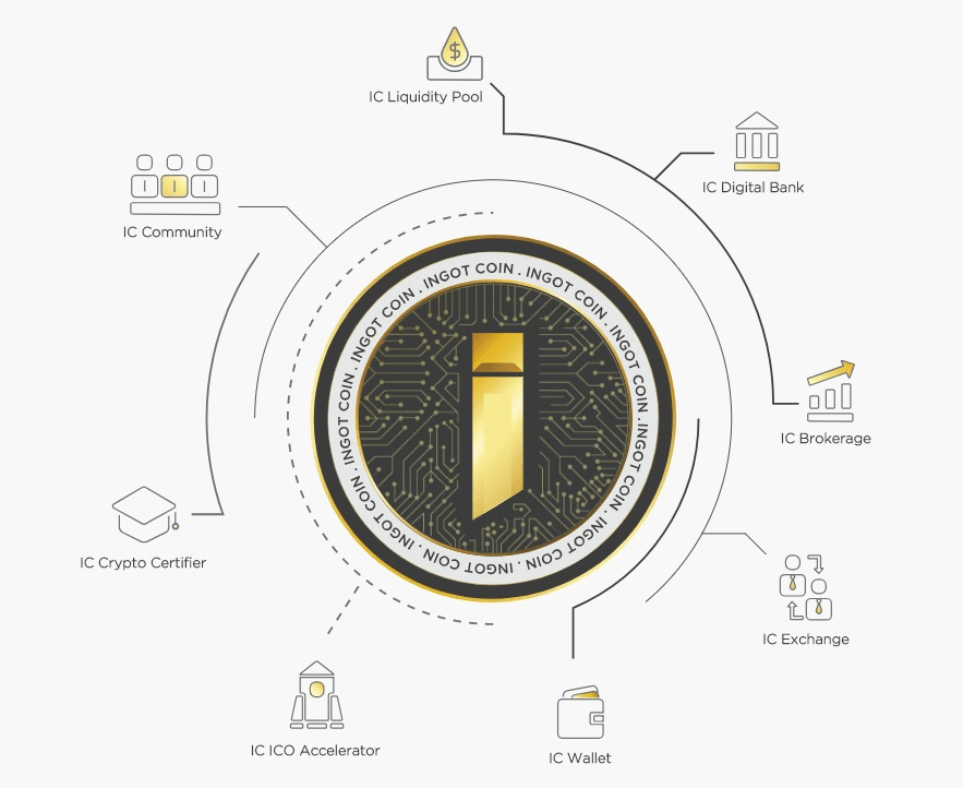 - IC Digital Bank, a 24/7 automated payment processing system which facilitates all transactions, payments, and settlements within the INGOT ecosystem. Clients will be able to open different bank accounts ranging from current and saving, to brokerage accounts.
