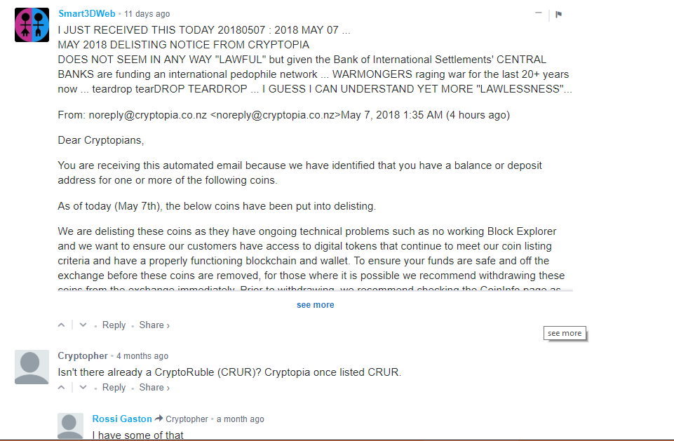 http://CRYPTOPIA.co.nz is DELISTING CHINESE RBT AND RUSSIAN CRUR ... wonder why ...