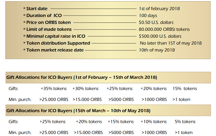 - ORBIS token is created in a limited supply of 8000.000.000.000 tokens which price will start at $0.50. ORBS token will be used to transfer funds safely not causing customers any money lose.