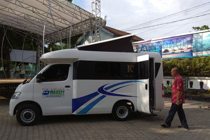 BANYUWANGI – Berwisata ke Banyuwangi makin menyenangkan. Pasalnya, wisatawan saat ini punya pilihan moda transportasi lebih nyaman. Ada mobil yang didesain dengan interior rumah mini, lengkap dengan fasilitas kulkas, Air Conditioner (AC), sofa kasur, hingga perlengkapan memasak seperti microwave dan kompor.
