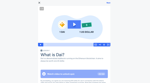Step 2: Navigate to Coinbase Earn. You will see a list of crypto tokens (“learn about 0x.”) They pay you $2 to watch a 2 minute video. They’re doing this to help educate new users about certain crypto projects.