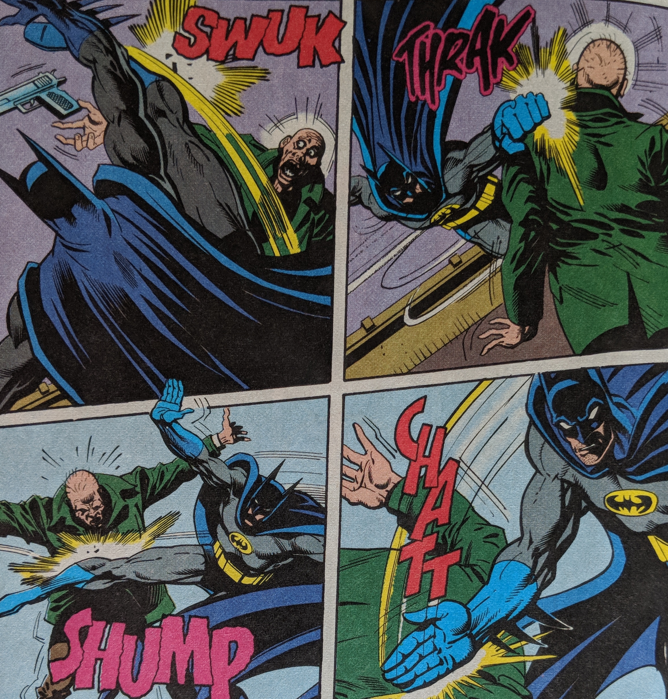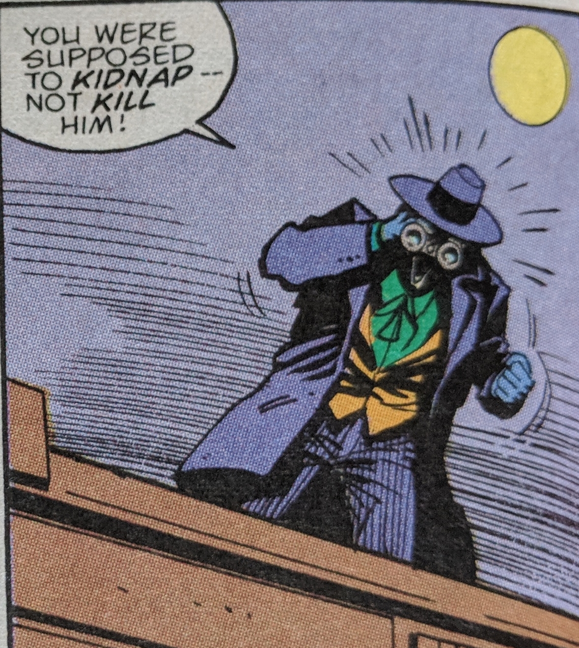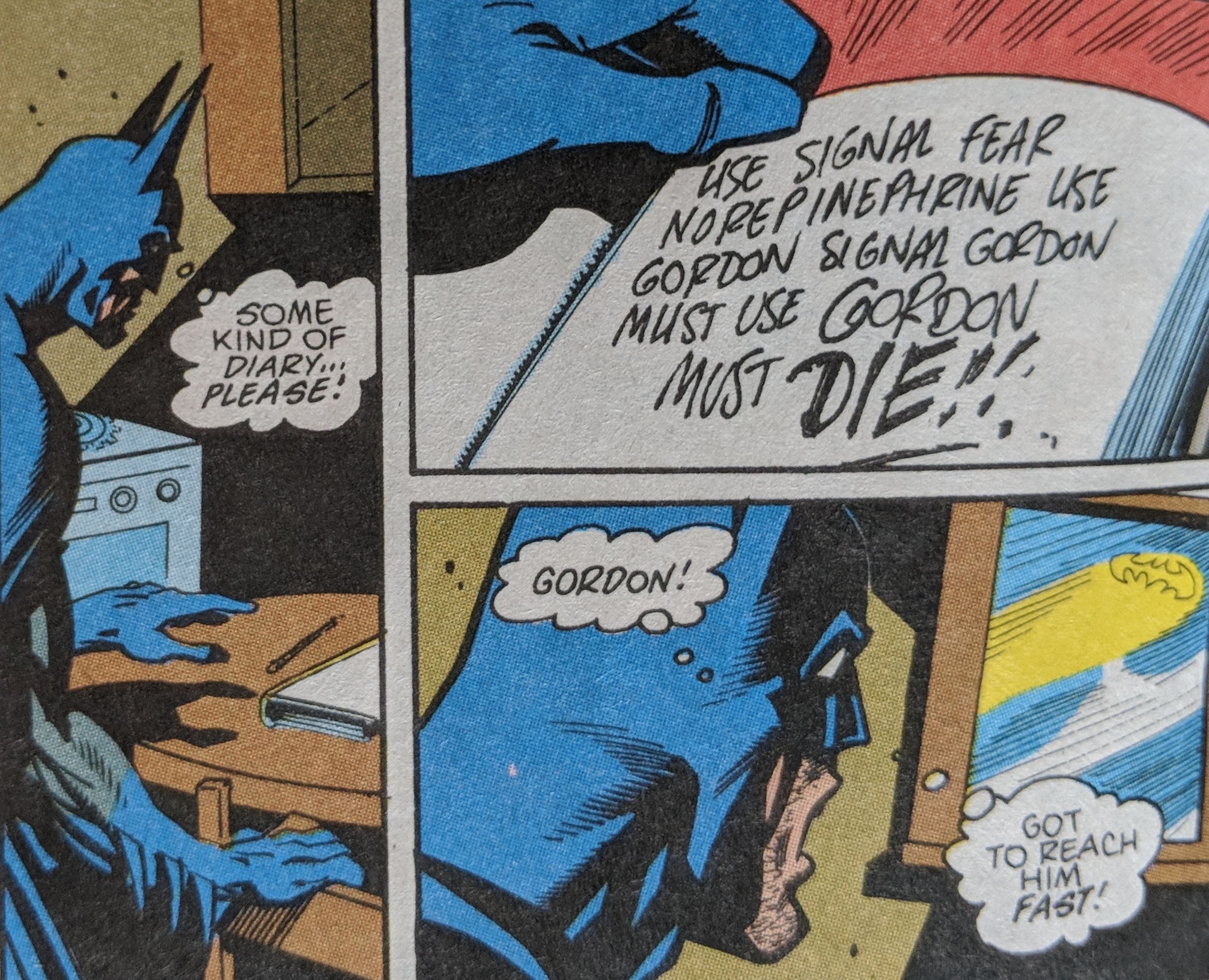 Batman saves Gordon, however, still hypnotized he thinks Batman killed him. Luckily, Mrs Gordon shows up to collect her husband.