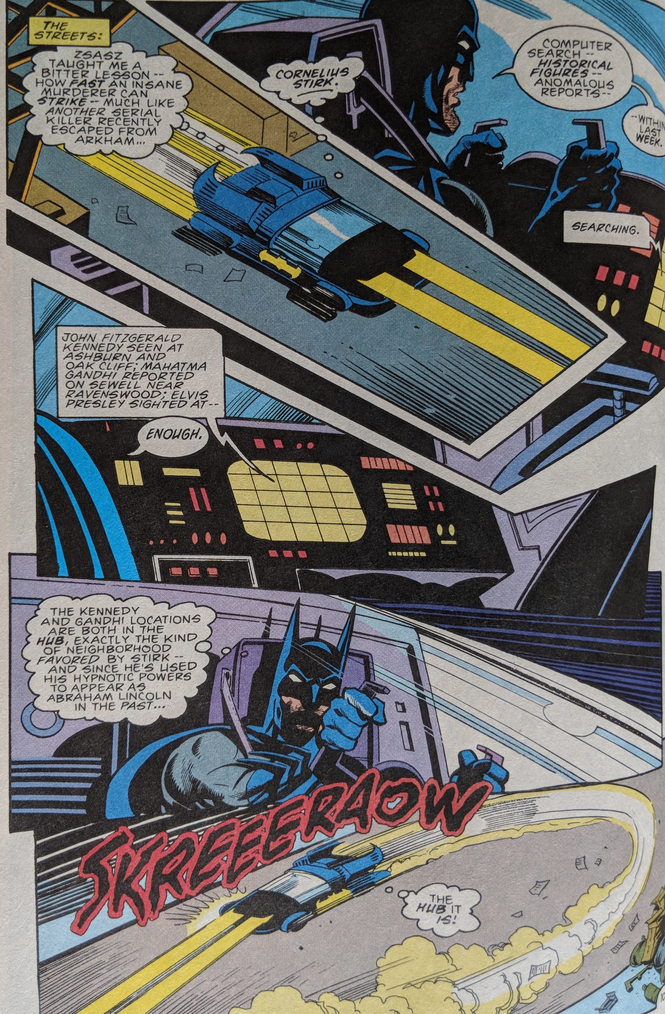 Batman speeds through the streets of Gotham looking for Cornelius Stirk. Bats didn't need another serial killer on the loose.