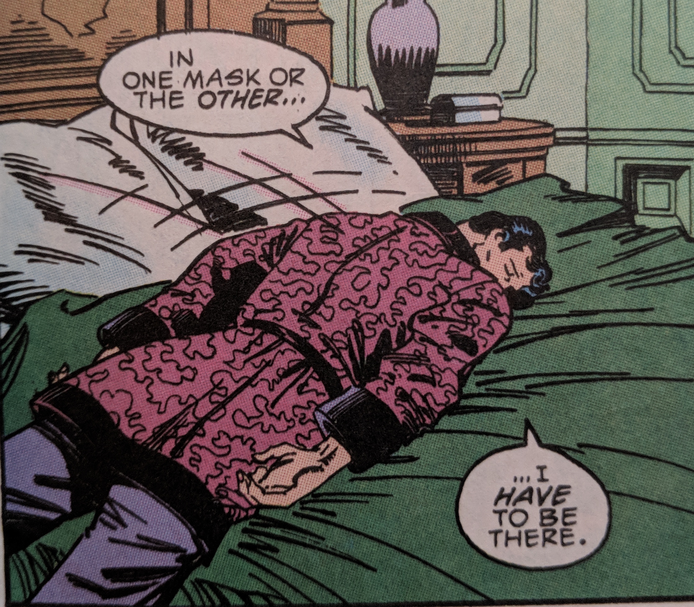 Bruce isn't home for long before Alfred is reminding him of his public life. He doesn't want Bruce out there in his condition but people are going to wonder. A big Wayne Foundation charity is happening and He needs to be there. Bruce only has one thing on his mind...