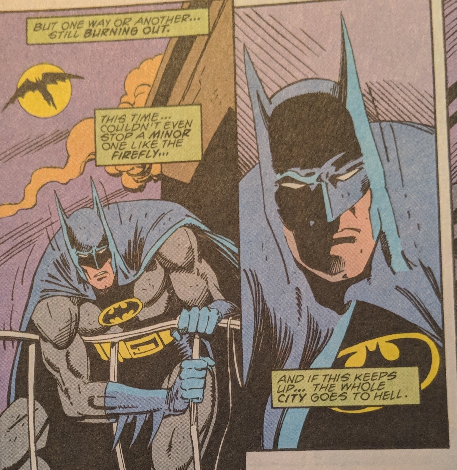 Batman can't hold on though and lets The Firefly escape.
