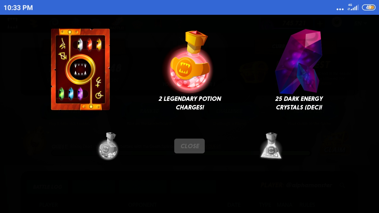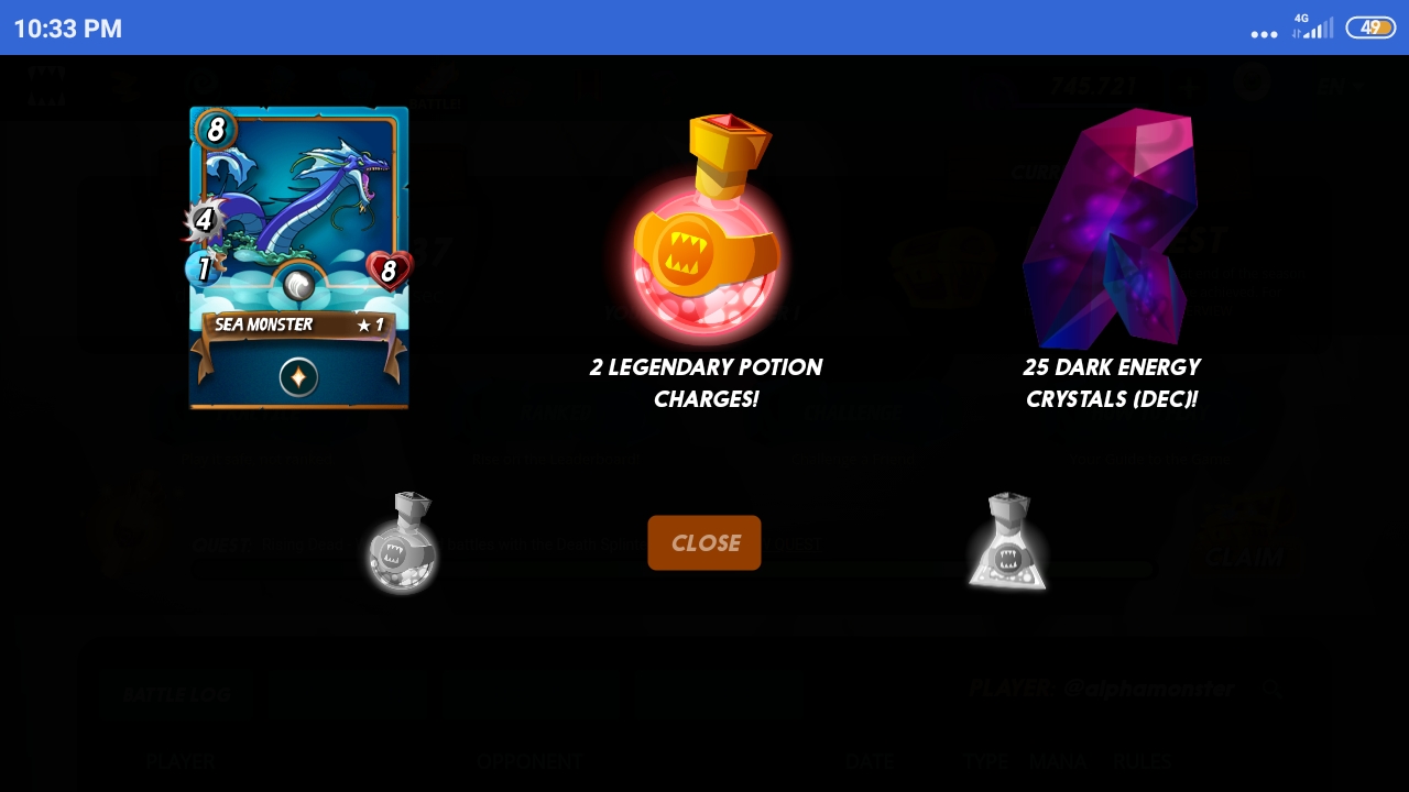 Today is the day of the new rewards system applied on steemmonsters 😉 I'm so excited to know what will I got for the first time. I completed the raising if the death with Lord of Darkness as the tank since the rulesets are standards. 7 battles and done!
