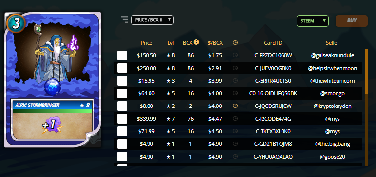 Just for a sense of the difficulty, the market is now only selling at $1.75 per bcx for a maxed card or a whopping $4.90 for a single.
