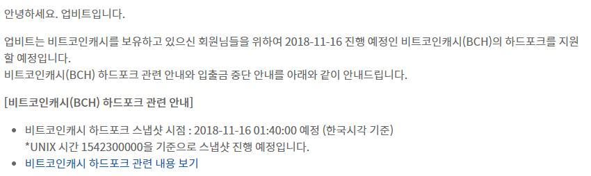 국내 암호화폐 거래소들은 이달 공지를 통해 비트코인캐시 하드포크를 지원하겠다 밝힌 바 있다. 특별히 어떤 것을 분리해 상장하겠다는 공지는 없었지만 ‘UNIX시간 15423000000(한국 시간 16일 오전 1시40분)’을 기준으로 스냅샷을 진행하겠다고 밝혔다. 이에 기자는 국내 암호화폐 거래소 중 한 곳인 업비트에서 비트코인캐시 스냅샷을 찍어보기로 결정했다.
