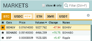 ABC진영이 승기를 가져가며 암호화폐 거래소 폴로닉스에서는 이날 10시40분 기준 임의 상장된 BCH ABC가 전날 동시 대비 15.75% 상승했다. 반면 BCH SV는 47.94% 급락했다. 두 암호화폐는 하드포크 전 가격이 유사한 흐름을 보였지만, 현재 각각 0.0514BTC, 0.016BTC로 네 배 가까운 차이가 나고 있다.