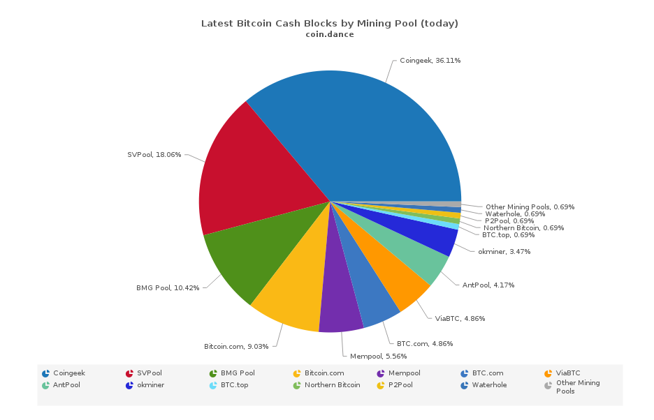 반면, 채굴 상황을 보면 코인긱(Coingeek, 36.11%), SVPool(18.06%), BMG Pool(10.42%), Mempool(5.56%)로 비트코인 SV 진영이 70.15%에 달한다. ABC보다 우세한 해시파워를 지니고 있는 셈이다. 현재 비트코인캐시 채굴자의 과반수 이상은 비트코인 SV를 지지하고 있다고 볼 수 있다.