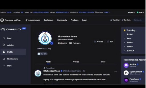 - Cmc: https://coinmarketcap.com/currencies/bitchemical/