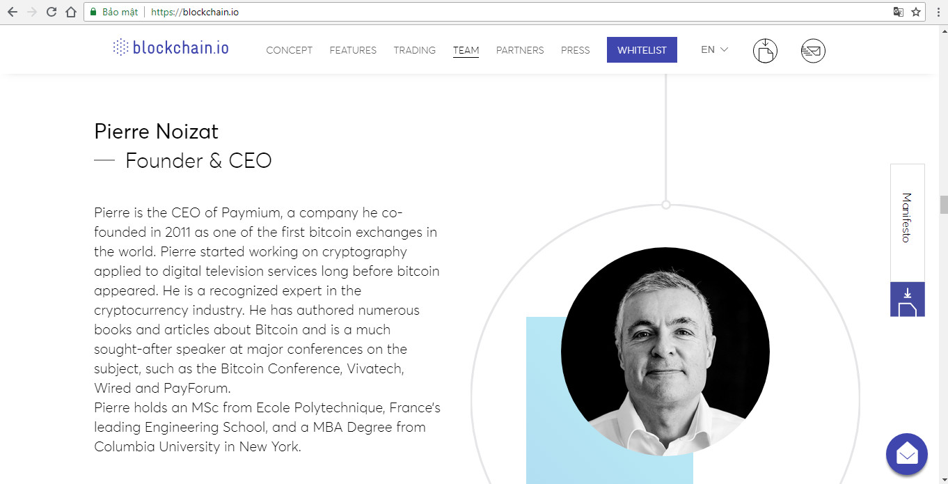 Blockchain.io được dẫn dắt bởi người sáng lập và Giám đốc điều hành Pierre Noizat, đồng thời là người đồng sáng lập và CEO của Paymium. Paymium ra mắt vào năm 2011 là một trong những sàn giao dịch bitcoin đầu tiên trên thế giới.
