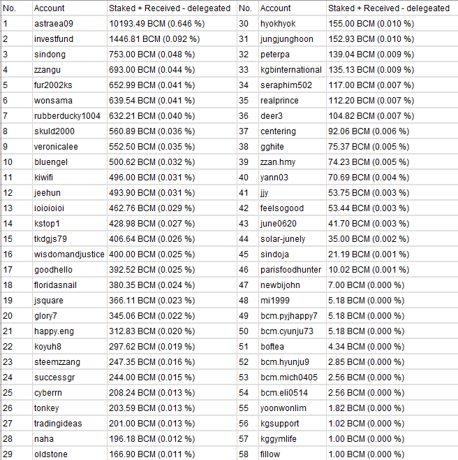 2020년 10월 10일 기준 (BCM 토큰 스테이킹 홀더 스냅샷)