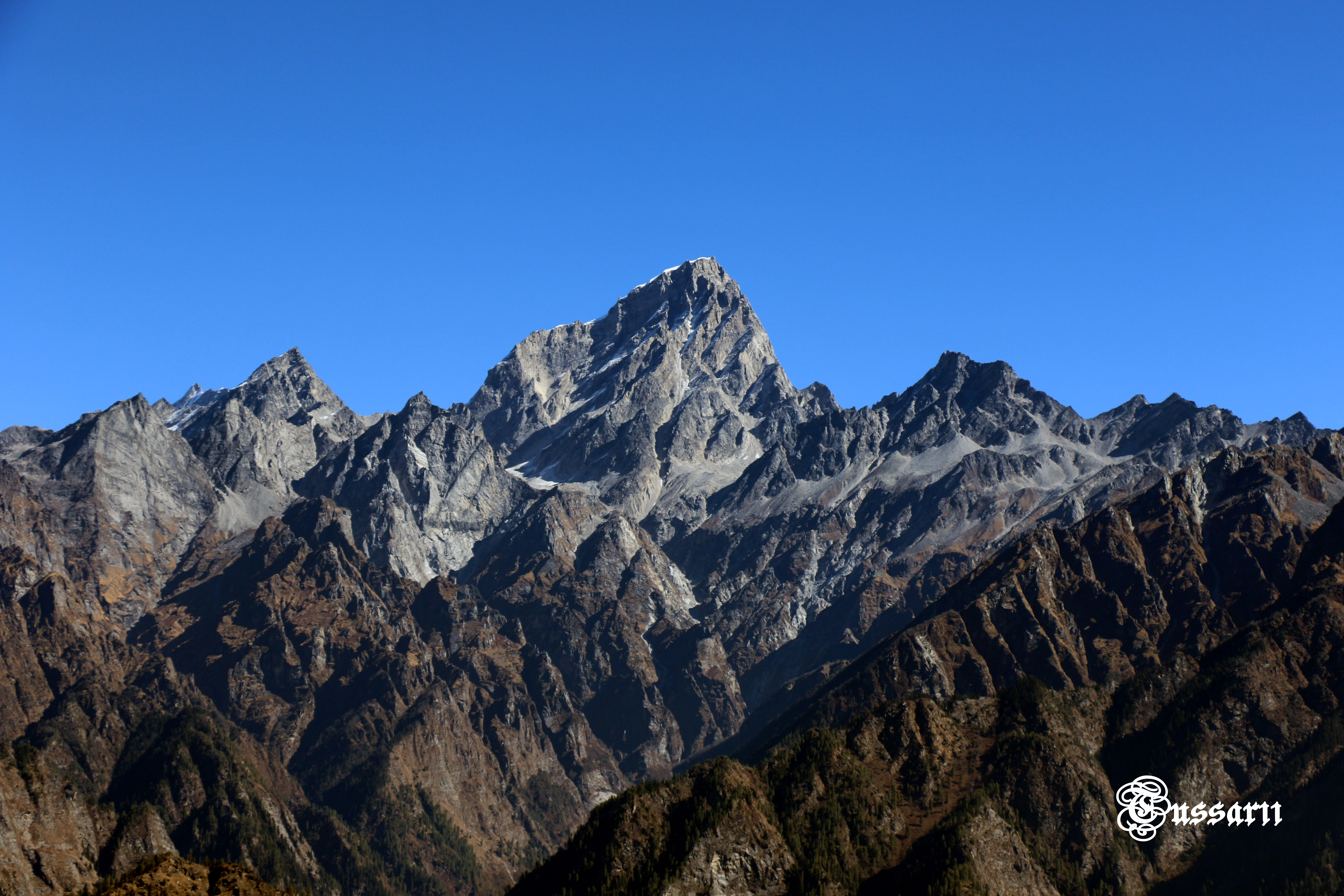 Hello friends. This post I share beautiful photographs of triangular mountain edge. It is combination of beautiful nature elements like Blue sky, mountains, greenery and snow on edge. I try to capture the beautiful layers of mountains with Triangular rocks which make this photograph awesome...